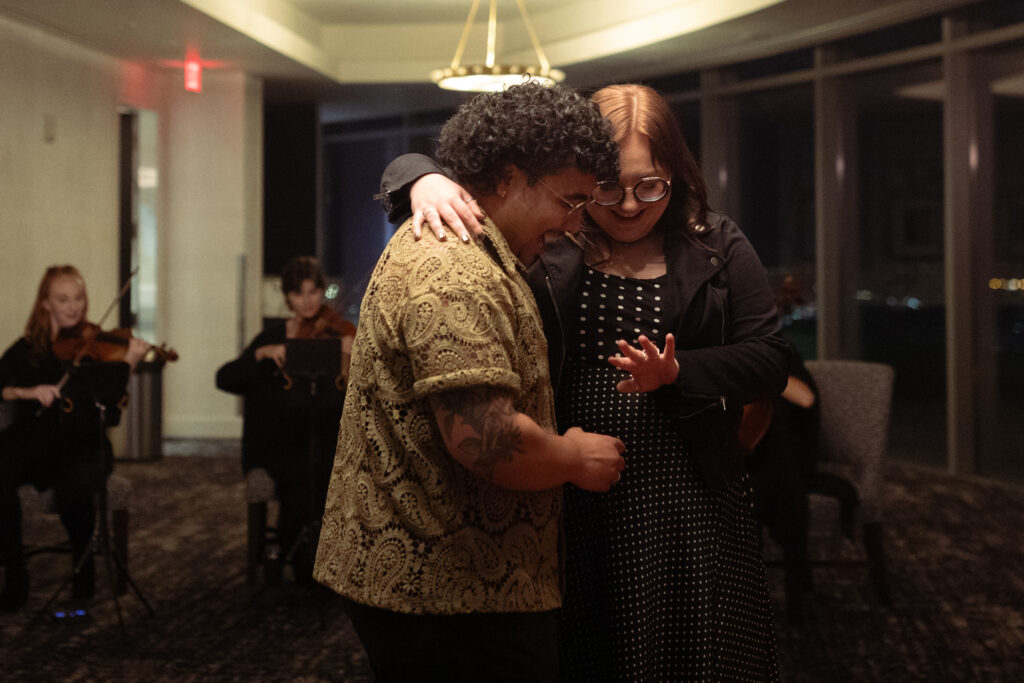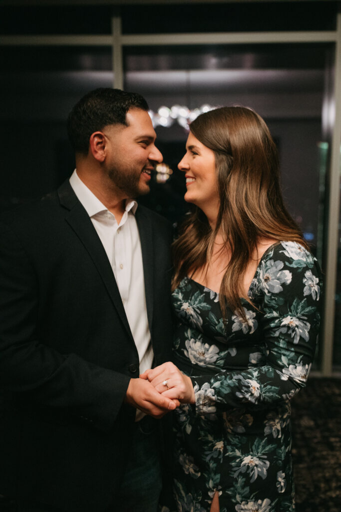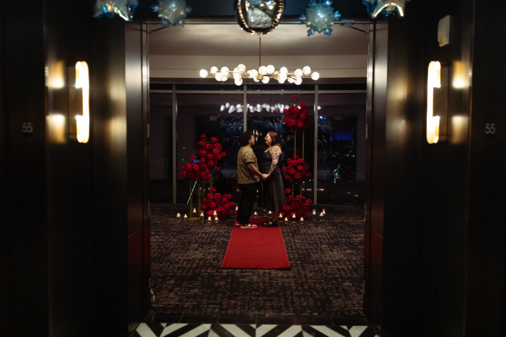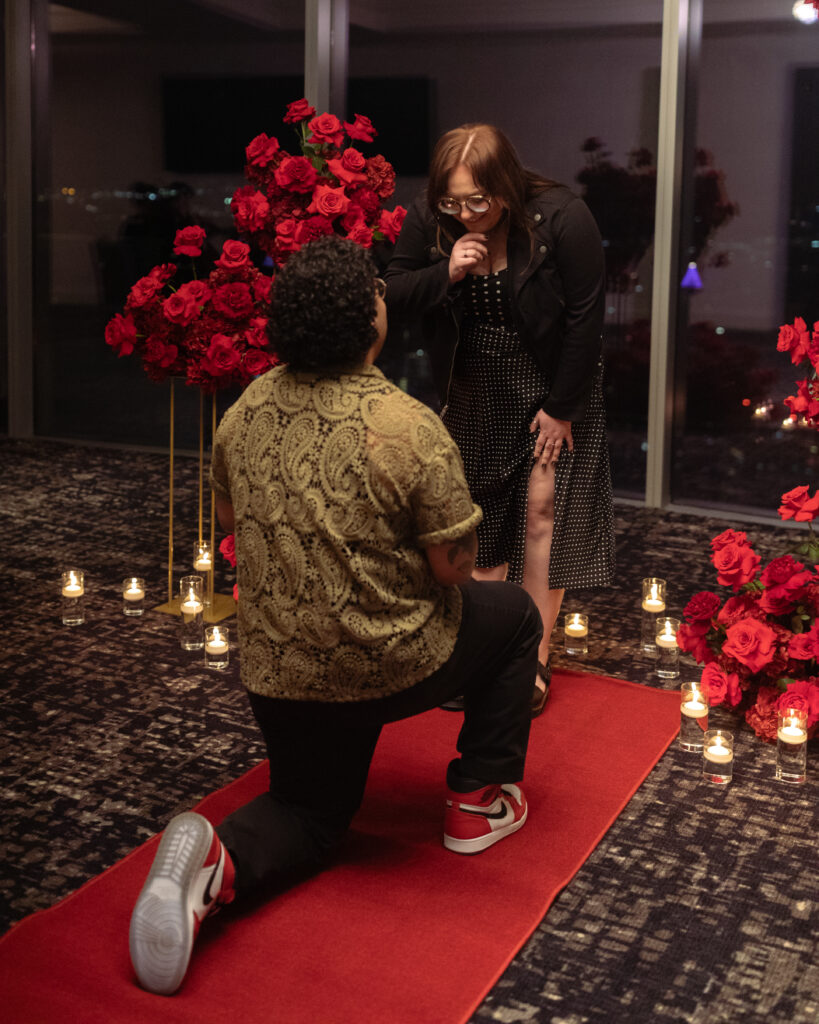 You don’t need flurries for it to feel like a holiday movie. A rooftop proposal can feel cinematic, especially with the right details.